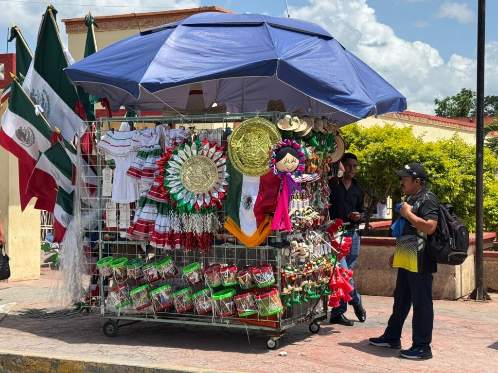 A una semana que hace falta para el mes de septiembre, en céntrica ciudad de Felipe Carrillo Puerto ya se puede ver la llegada de vendedores de adornos, como banderas, llaveros, aretes, tambores y prendas de vestir, no obstante aún no hay venta, mencionó Daniel Sánchez.