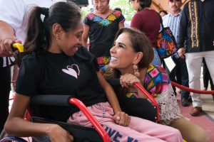 A través de la Beneficencia Pública, la titular del Ejecutivo entregó 3 sillas de ruedas que se pueden considerar especiales: una es de vida independiente, que se hizo a la medida y peso del beneficiario; otra es silla eléctrica y la tercera, infantil.