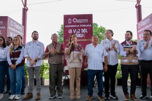 “Estoy feliz de estar en José María Morelos, en venir a escucharlos en estas audiencias públicas. Nos sentamos, escuchamos, resolvemos. Hay cosas que son a veces más complicadas, pero para eso nos acompaña todo el gabinete, literal” añadió la Gobernadora, acompañada del presidente municipal Erik Borges Yam.