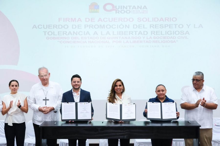 Antes de la firma protocolaria, Mara Lezama destacó que este gobierno humanista y progresista, que se conduce bajo un Nuevo Acuerdo por el Bienestar y Desarrollo de Quintana Roo con la participación de toda la sociedad, tiene el deber de proteger y garantizar a cada persona, de forma compatible con el bienestar de la población, que tenga la posibilidad de actuar según su propia creencia, tanto en la vida pública como privada.