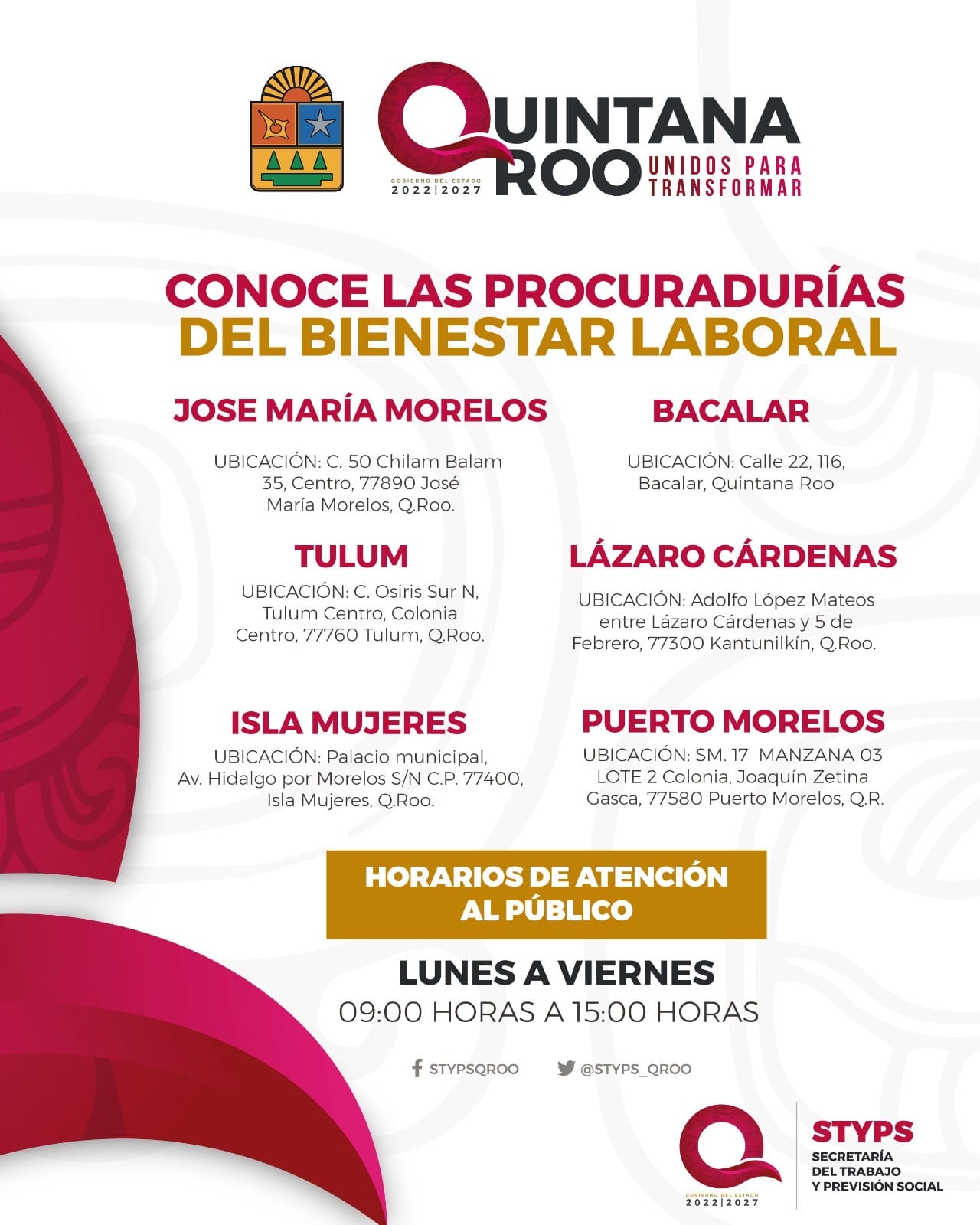 Chetumal. – En el marco del gobierno humanista y cercano a la gente que encabeza la gobernadora Mara Lezama Espinosa, la Secretaría del Trabajo y Previsión Social, a través de la Procuraduría de la Defensa del Trabajo, reafirma su compromiso con la protección y garantía de los derechos laborales de las y los trabajadores de Quintana Roo.