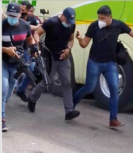 CHETUMAL. Luego de las manifestaciones que se realizaron ayer en la capital del estado y cuando los manifestantes que llegaron desde la zona norte de la entidad para marchar, por lo que al concluir mientras se retiraban, fueron intimidados por elementos ministeriales quienes portaban armas que se encontraban de manera sospechosa en los alrededores del Congreso del Estado en una camioneta blanca, sin placas y polarizada justo detrás del vehículo blindado donde se transportaba el empresario Carlos Mimenza, en la calle 22 de enero casi esquina Miguel Hidalgo