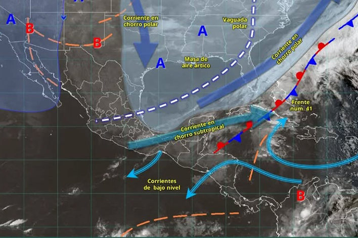 A nivel nacional, una vaguada polar y el ingreso de humedad desde el océano Pacífico y el golfo de México favorecerán lluvias en diversos estados del sureste, incluyendo Campeche, Yucatán y Quintana Roo, mientras la masa de aire frío comienza a modificar gradualmente sus características.