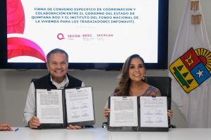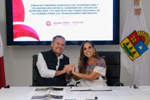 “Me da gusto firmar este convenio, porque aquí en Quintana Roo tienen prácticamente digitalizado su Registro Público, eso ayudará muchísimo a que las cancelaciones se hagan de manera directa entre INFONAVIT y el gobierno del estado, lo que permitirá que la entrega pueda ser de forma masiva”, comentó.