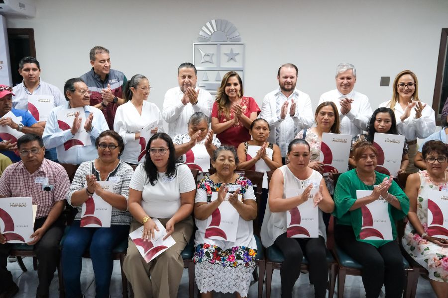 Chetumal.- En un acto de auténtica justicia social y legalidad, la gobernadora Mara Lezama Espinosa encabezó la entrega de 32 títulos de propiedad que garantiza certeza patrimonial; algunas personas llevaban más de 30 y hasta 40 años en espera y a partir de hoy ya cuentan con seguridad jurídica sobre su patrimonio.