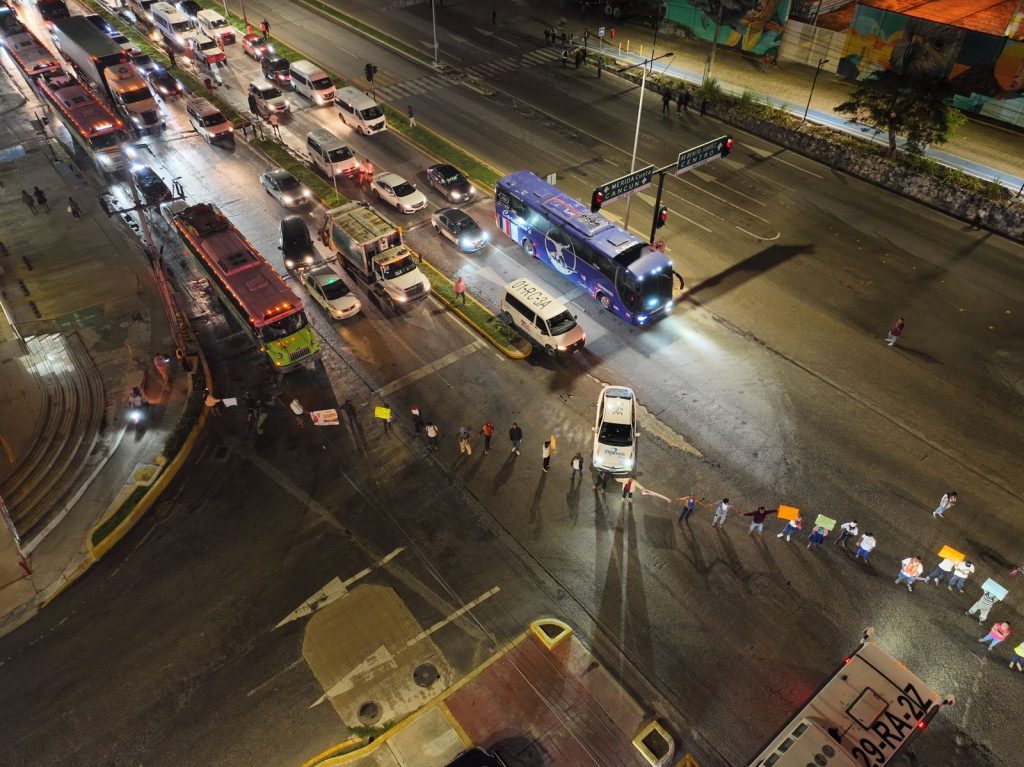 Esta manifestación generó un enorme caos vial en este importante cruce de Playa del Carmen.