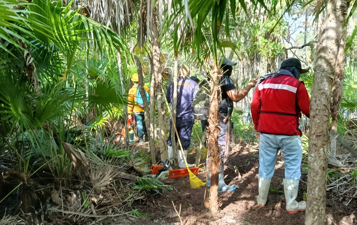 Holbox.- Con la finalidad de controlar el incendio en la Ensenada de la isla de Holbox, personal de la Comisión Nacional Forestal, Comisión Nacional de Áreas Naturales y Protegidas, y del cuerpo de bomberos, procedieron a realizar una brecha corta fuego de un kilómetro.