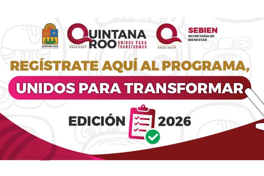 Quintana Roo.- La Secretaría de Bienestar de Quintana Roo (SEBIEN) anunció que del 20 de abril al 8 de mayo de 2026 estarán abiertos los registros para las convocatorias de los programas Impulso y Unidos para Transformar.