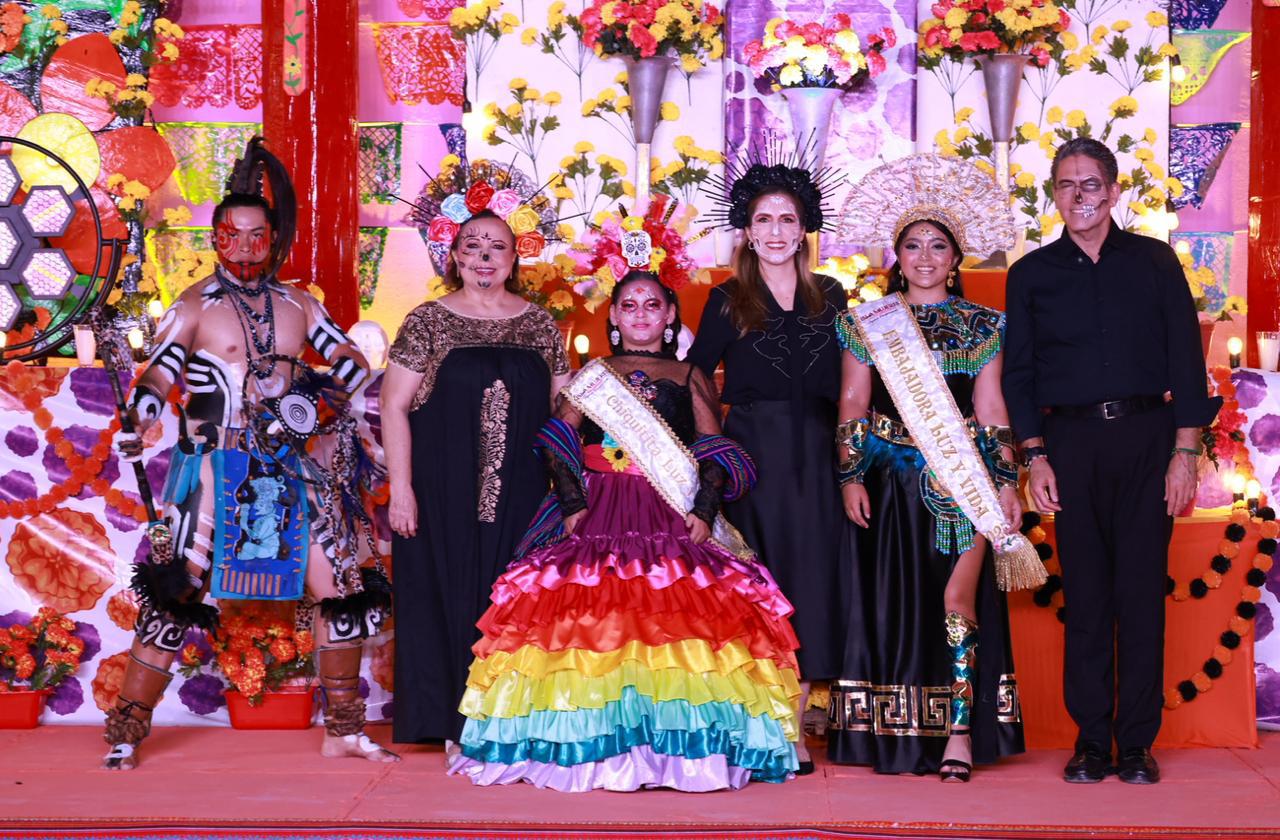 En un ambiente lleno de color, historia y orgullo, se llevó a cabo la coronación de la embajadora del Festival “Luz y Vida: Entre Vivos y Muertos”, la joven Tanit de María Valerio Romo, quien también deleitó al público con una presentación musical.