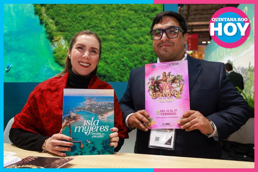 Isla Mujeres.– Como parte de su agenda de promoción en FITUR 2026, la Delegación de Isla Mujeres encabezada por la Presidenta Municipal, Atenea Gómez Ricalde, presentó en la pantalla gigante del Pabellón de México, el video oficial del Carnaval “Soy Isla Mujeres” 2026, la celebración más importante y esperada por las familias isleñas y visitantes.