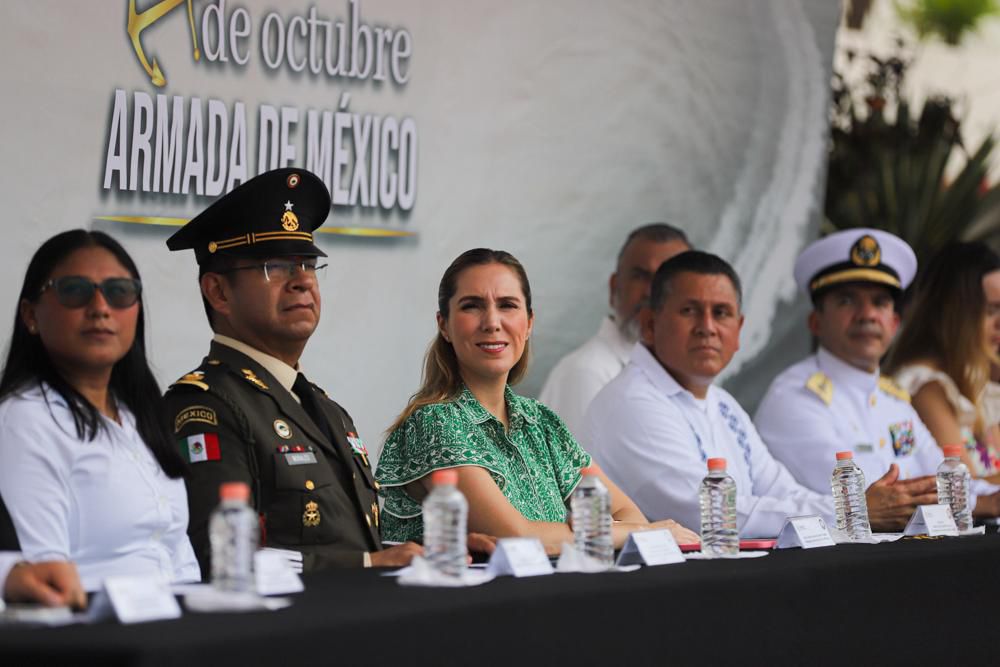 Isla Mujeres, 04 de octubre de 2024.- La Presidenta Municipal de Isla Mujeres, Atenea Gómez Ricalde, acompañó al Almirante Abraham Eloy Caballero Rosas, comandante de la Novena Región Naval, a la Ceremonia Conmemorativa por el Bicentenario de la Promulgación de la Constitución Federal de 1824 y el 203 Aniversario de la Creación de la Armada de México.