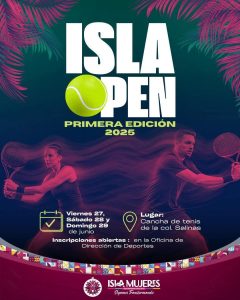 Isla Mujeres.- Con el objetivo de fomentar la práctica deportiva en espacios dignos, así como la sana convivencia familiar, el Gobierno de Isla Mujeres, que encabeza la Presidenta Municipal Atenea Gómez Ricalde, llevará a cabo la primera edición del “Isla Open 2025”, del viernes 27 al domingo 29 de junio.