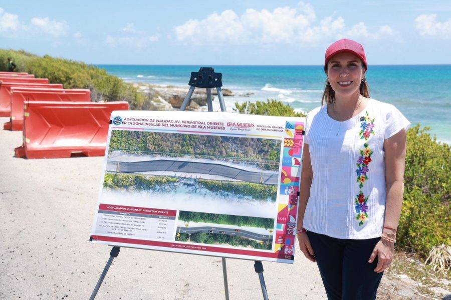 Isla Mujeres. – Como parte del compromiso del Gobierno Municipal de Isla Mujeres con la seguridad y la movilidad de las isleñas e isleños y de los turistas que visitan el destino, la Presidenta Municipal, Atenea Gómez Ricalde, realizó un recorrido de supervisión en la obra de la vialidad alterna que se construye en la carretera Perimetral del Mar Caribe, frente al deslave originado en meses pasados por el paso del huracán “Helen”.