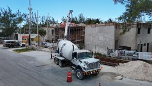 Isla Mujeres.– La obra del la nueva Estación de Protección Civil y Bomberos en Costa Mujeres, lleva un avance del 80 por ciento y como parte de estos trabajos hoy se realizó el colado de la loza del edificio.