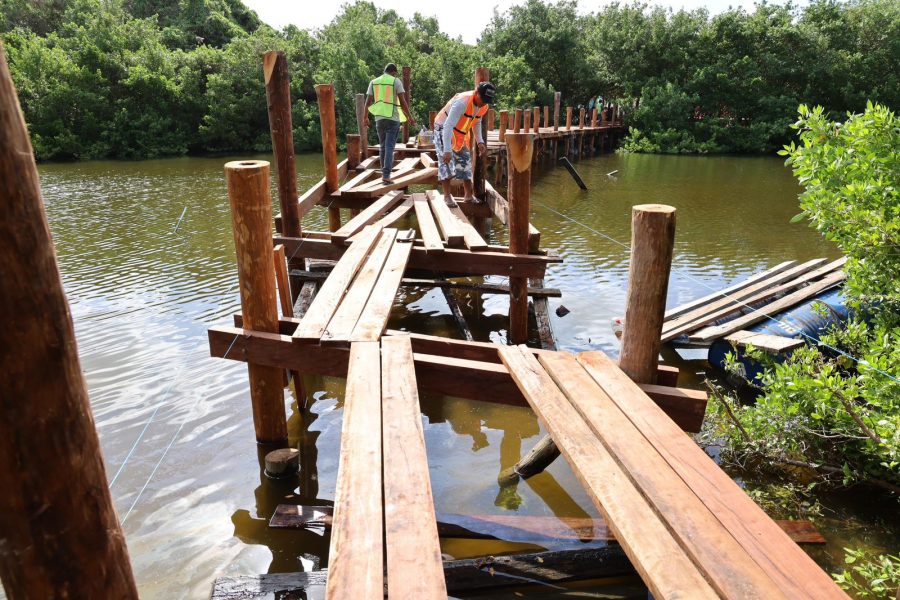 En compañía del Cronista Vitalicio de Isla Mujeres, Fidel Villanueva Madrid, y de las y los vecinos de las colonias Caridad del Cobre y Lol-Bé, la Presidenta Municipal, Atenea Gómez Ricalde, realizó un recorrido para constatar los trabajos que realiza el Gobierno Municipal en el andador de la Salina Grande.