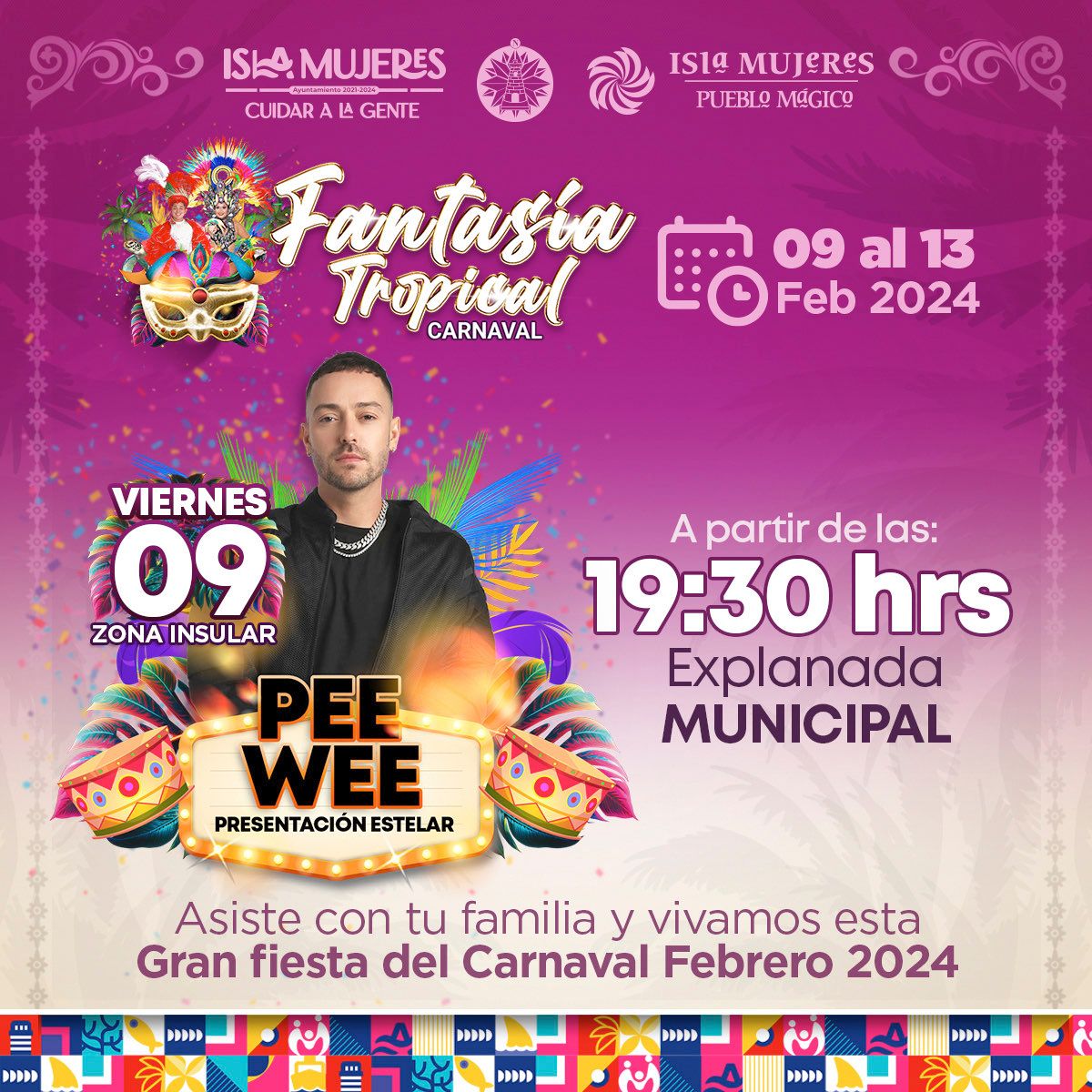 ISLA MUJERES.- El Gobierno Municipal de Isla Mujeres invita a las familias isleñas y turistas este 9 de febrero, al arranque del Carnaval Fantasía Tropical 2024 en la Zona Insular con la Gala de Coronación, a partir de las 19:30 en la Explanada Municipal.