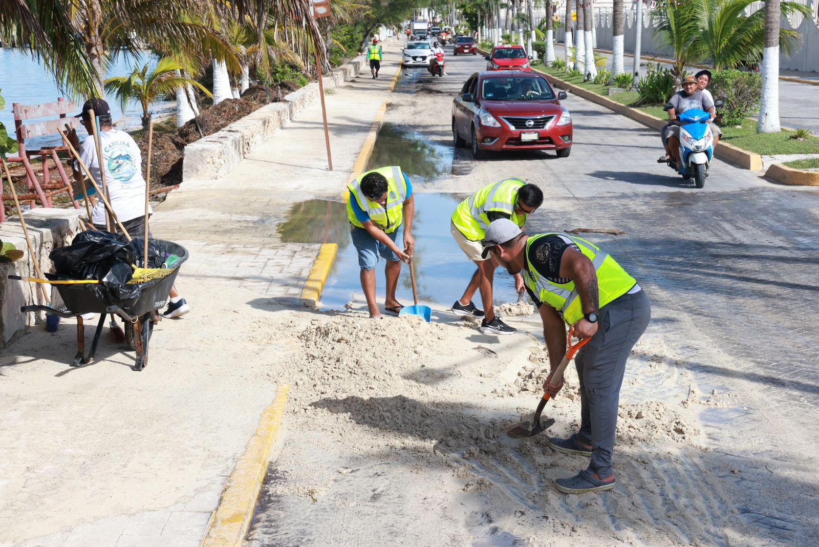 El Gobierno Municipal que encabeza la alcaldesa isleña Atenea Gómez Ricalde, continúa con los trabajos para atender las afectaciones que dejó a su paso el fenómeno hidrometereológico, por lo cual desde temprana hora, dividido en cuadrillas, el personal atendió las distintas zonas y colonias para realizar una limpieza general en las calles y avenidas.