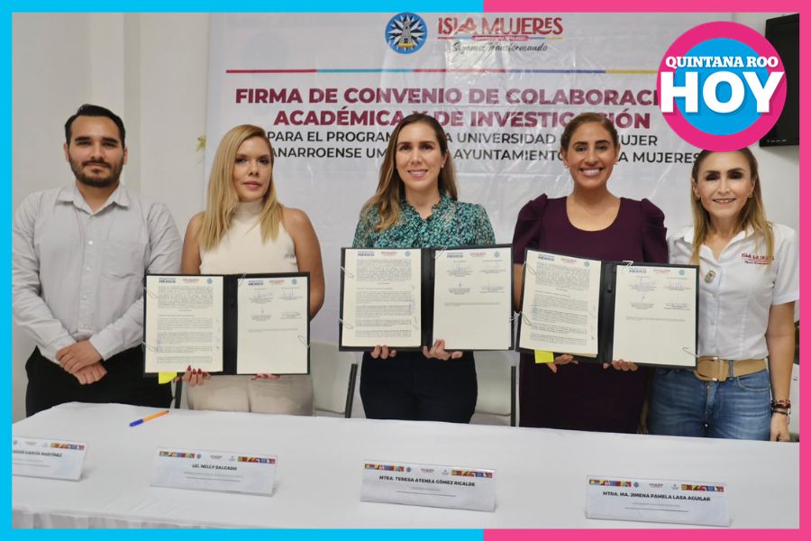 Isla Mujeres.- Con el objetivo de fortalecer el compromiso con la profesionalización, el crecimiento académico y la mejora continua del servicio público, el Gobierno Municipal que encabeza la alcaldesa Atenea Gómez Ricalde, llevó a cabo la Firma del Convenio de Colaboración Académica y de Investigación con la Universidad de la Mujer Quintanarroense (UMQ) y la Red Educativa México, para formalizar una alianza orientada a ampliar las oportunidades educativas de las y los trabajadores del municipio y de sus familias.