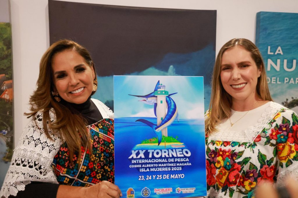 Isla Mujeres.- En el marco del Tianguis Turístico de México 2025, que se llevó a cabo en Tijuana, Baja California, la Presidenta Municipal de Isla Mujeres, Atenea Gómez Ricalde y la Gobernadora del Estado, Mara Lezama Espinosa, presentó de manera oficial el XX Torneo Internacional de Pesca “Cosme Alberto Martínez Magaña”, que se celebrará los días 23, 24 y 25 de mayo en la Isla.