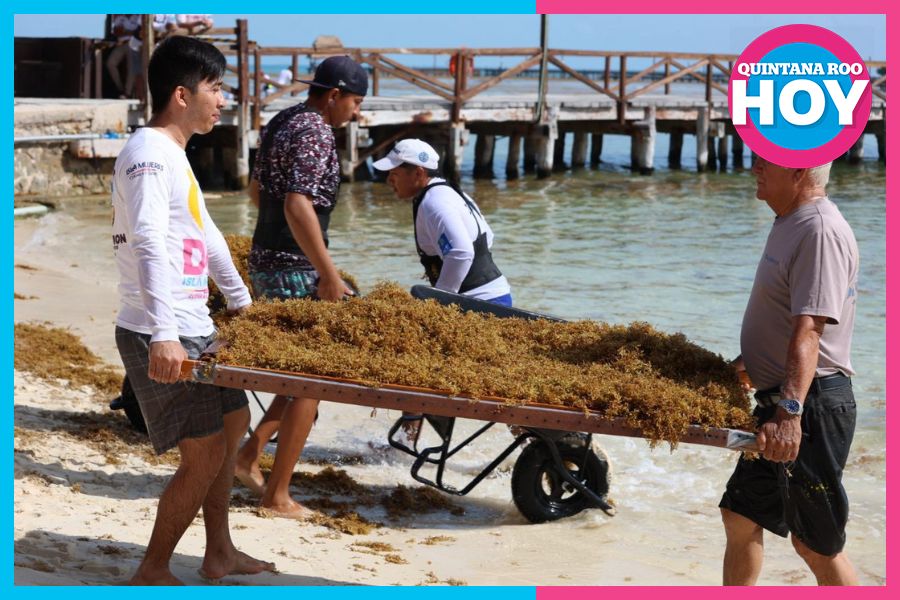 Con apoyo de más de 130 personas, Isla Mujeres atendió el recale de 140 toneladas de sargazo en Playa Norte. Van 1,334 toneladas en la temporada.