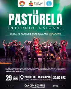En esta función, la Compañía Municipal de Ballet Folclórico mostrará un fragmento de la pastorela. Además, presentará parte de su espectáculo de temporada “Para ti, Quintana Roo”.