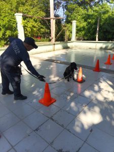 Por su parte, Francisco Tun Chan, instructor en el área canina, explicó el entrenamiento diario de un can, que inicia con una revisión médica a fin de corroborar que el animalito se encuentre libre de enfermedades o lesiones que le impidan salir a la calle, o en su caso para darle seguimiento al tratamiento que lleve.