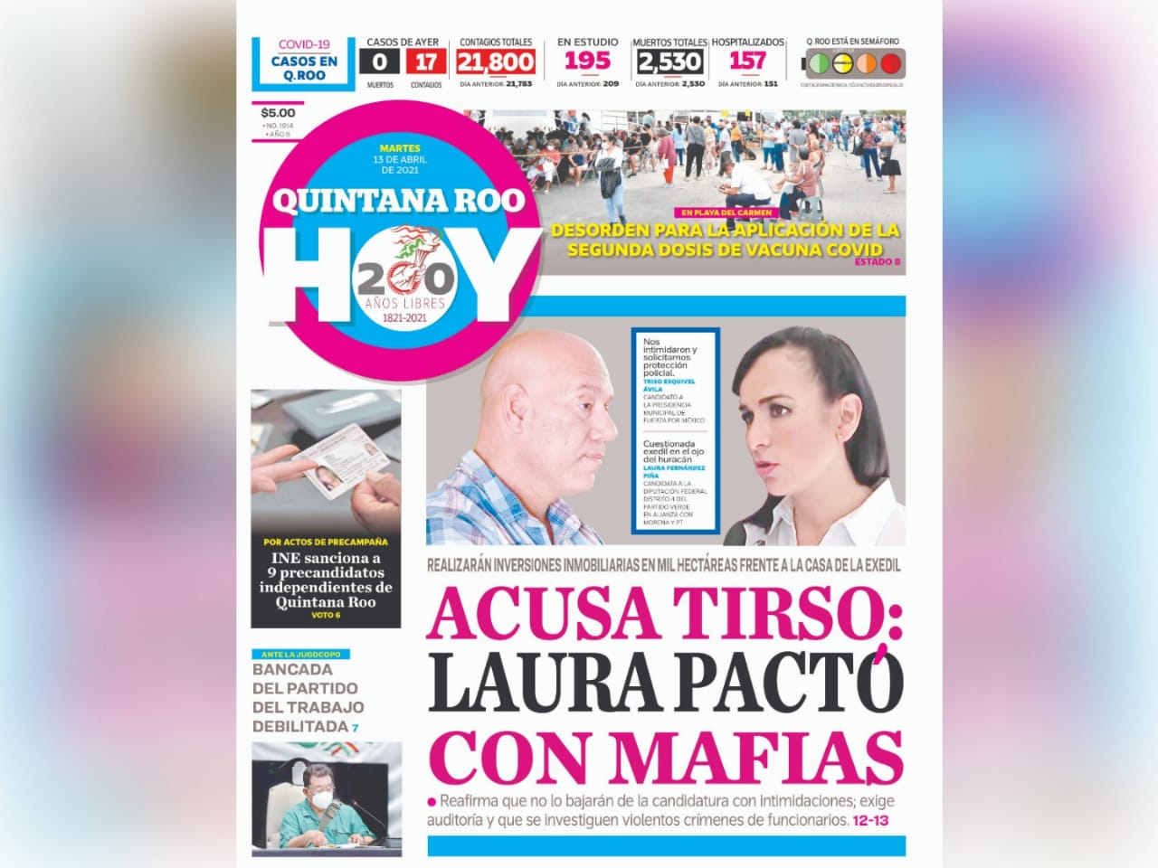 Tirso Esquivel Ávila, ofreció ayer una conferencia de prensa en la sede del partido en Cancún y en donde estuvo acompañado del dirigente estatal de Fuerza por México, Manuel Espinoza Alemán; ahí el precandidato reveló que él y su esposa han recibido amenazas por lo que ya solicitaron ante el Instituto Electoral de Quintana Roo (Ieqroo) que haga las gestiones para que le brinden protección, además se lanzó fuerte contra la exalcaldesa Laura Fernández Piña, a quien acusó de haberse reunido con integrantes de la mafia rumana, quienes le presentaron un proyecto para construir en un terreno de mil hectáreas que está precisamente frente a la casa de la exedil.