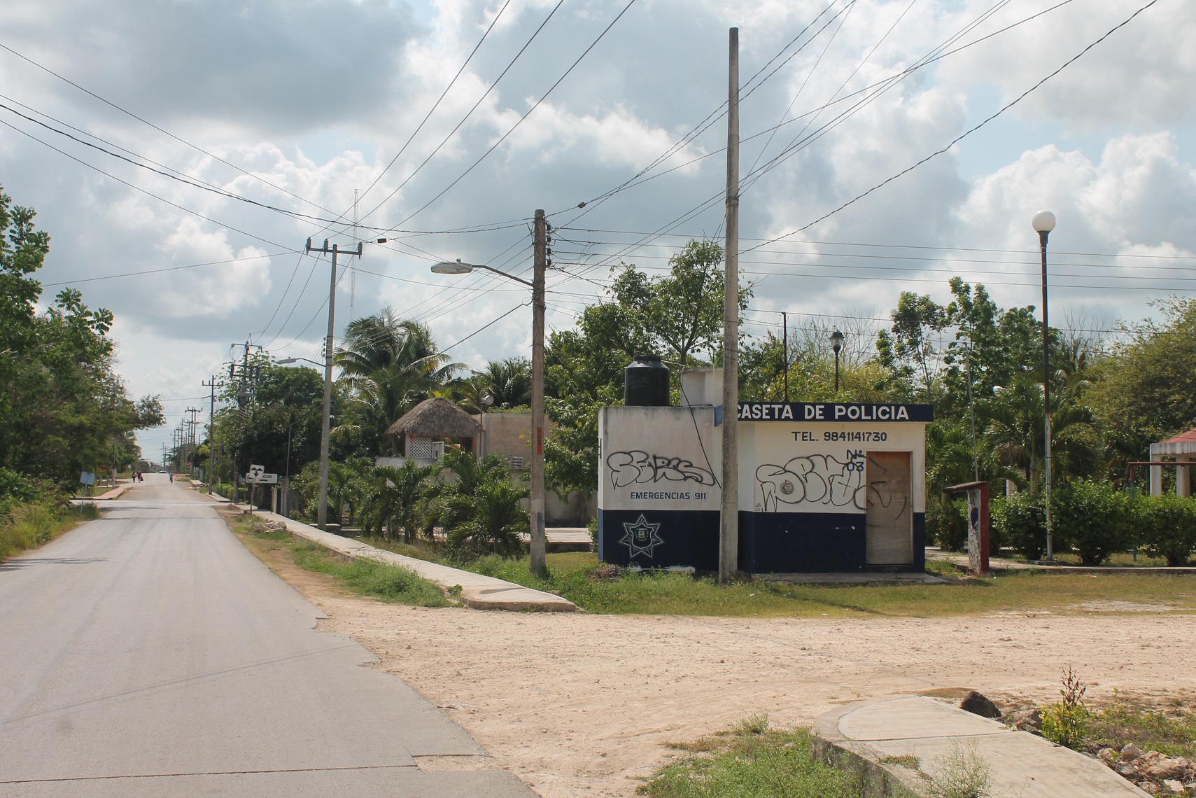 Lázaro Cárdenas.- Vecinos de la colonia CAPA pidieron a la Dirección de Seguridad Pública y Tránsito municipal que provean vigilancia a la caseta de la calle 24 de Noviembre, ya que fue grafiteada y da una mala imagen por estar en el periférico, cruce de automovilistas que van a Cancún. Aseguran que desde que entró la nueva administración se recrudeció la inseguridad; en dicha caseta fue reportado un muñeco de cartón en forma de persona muerta y que incluso había una mano en su interior, que movilizó a la policía pero hubo total hermetismo de las autoridades. Otra cosa que les preocupa es la falta de alumbrado público.