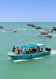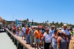 Holbox.- Cientos de personas participaron en la tradicional procesión en honor a San Pedro González Telmo, patrono de los pescadores de esta isla, que incluyó un recorrido realizado en mar, efectuado por un ferry y varias lanchas.