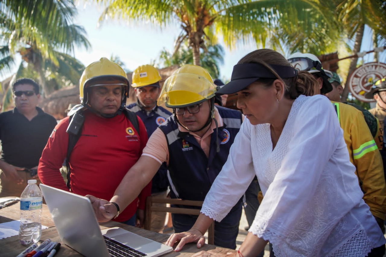 Holbox.- La gobernadora Mara Lezama Espinosa tomó acciones inmediatas tras la atención al incendio de Holbox en el que se registró saldo blanco y anunció la construcción de una estación de bomberos, con personal capacitado y un vehículo especializado.