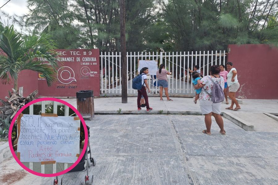 Con pancartas que pegaron en frente del plantel educativo piden a la Secretaría de Educación en Quintana Roo (SEQ) que encabeza, Elda Xix Euan, que se complete la plantilla docente, porque sus hijos están perdiendo clases.