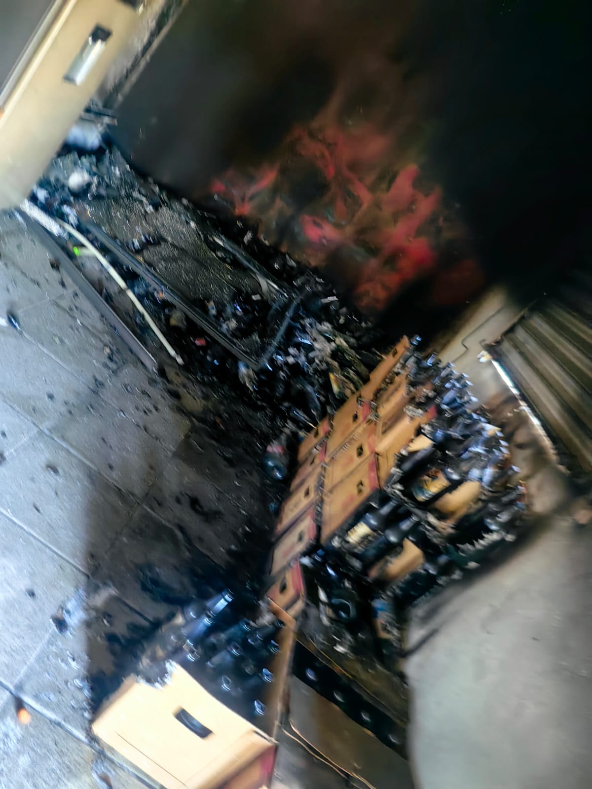 Tras el saqueo, el inmueble fue incendiado desde el interior. Presuntamente, el fuego habría sido provocado para borrar evidencias. Las llamas consumieron gran parte del establecimiento.