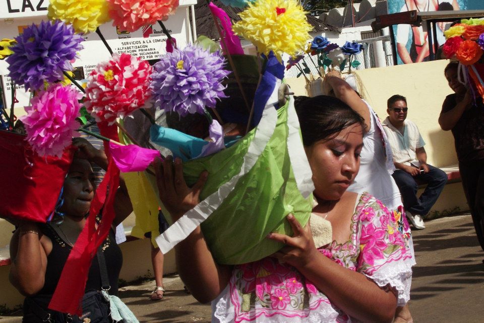 No puede hablarse de la fiesta sin mencionar a los kuucho’ob (cargadores), que vienen siendo los pilares de todas las fiestas tradicionales.