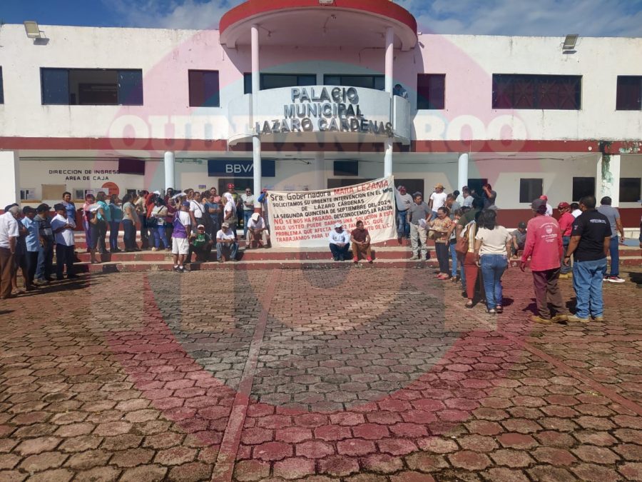 KANTUNILKÍN.- Por tercera ocasión los trabajadores del sindicato al servicio del ayuntamiento de Lázaro Cárdenas, realizaron una protesta en frente del Palacio Municipal, en exigencia de que les paguen la segunda quincena del mes de septiembre que les adeudan desde en el gobierno de Orlando Emir Bellos Tun.
