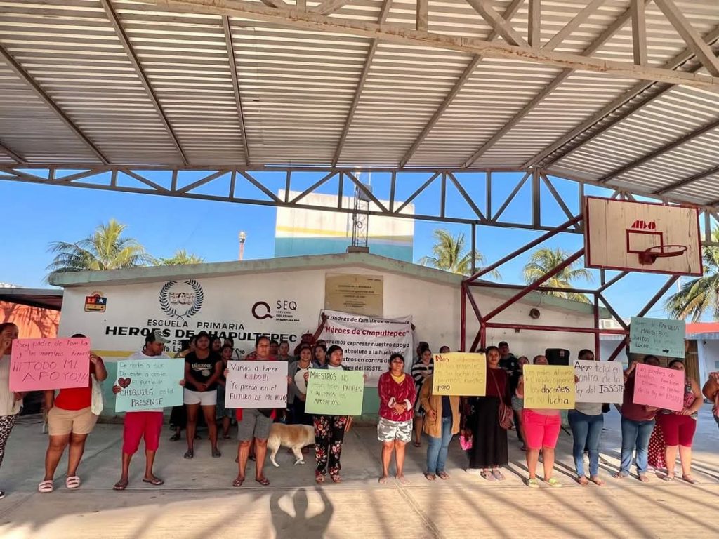 Padres de familia respaldan lucha de maestros contra la reforma del ISSSTE en Chiquilá