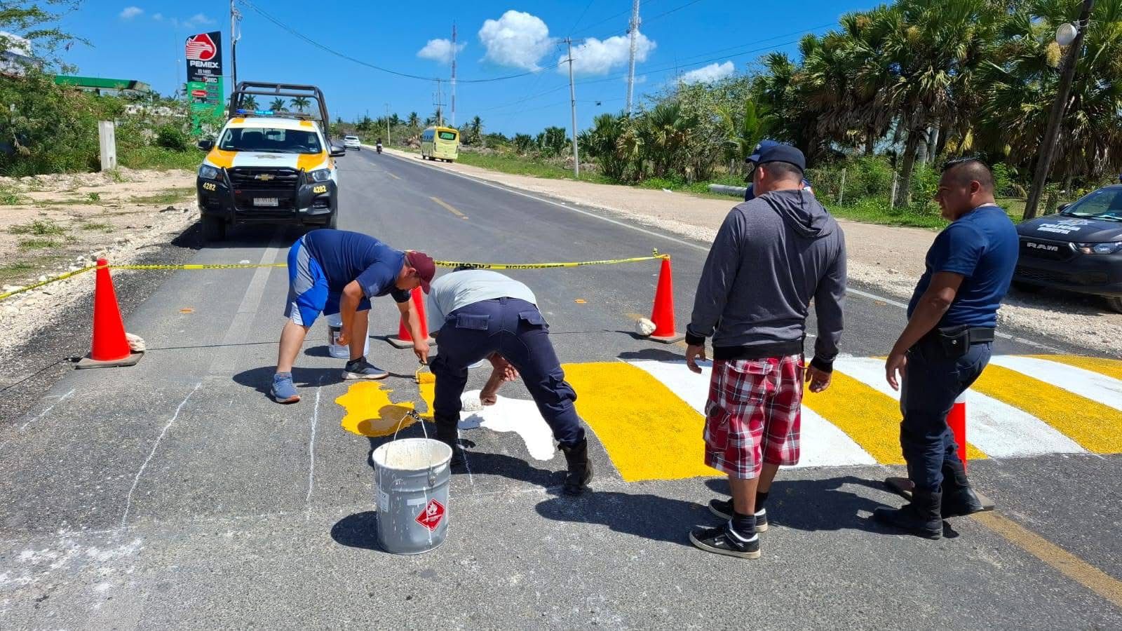 Chiquilá— El alcalde del puerto de Chiquilá, Jairo Nain Pérez Coral, destacó el trabajo que realiza el área de Tránsito Municipal con la habilitación de un nuevo paso peatonal frente al Colegio de Bachilleres, ubicado en la entrada de la comunidad, con el objetivo de mejorar la seguridad y la visibilidad tanto para peatones como para comercios locales.