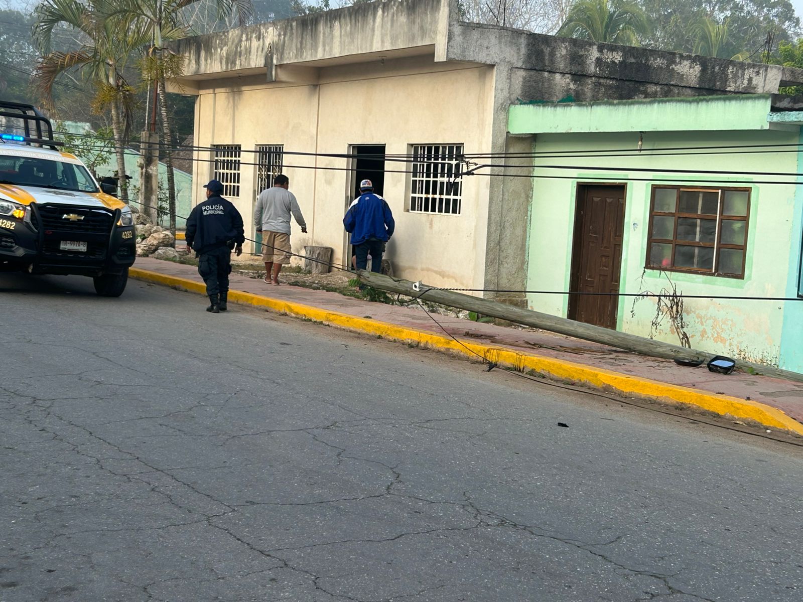 Una pareja chocó contra un poste de Telmex en Kantunilkín tras una distracción dentro del vehículo. El accidente dejó solo daños materiales.