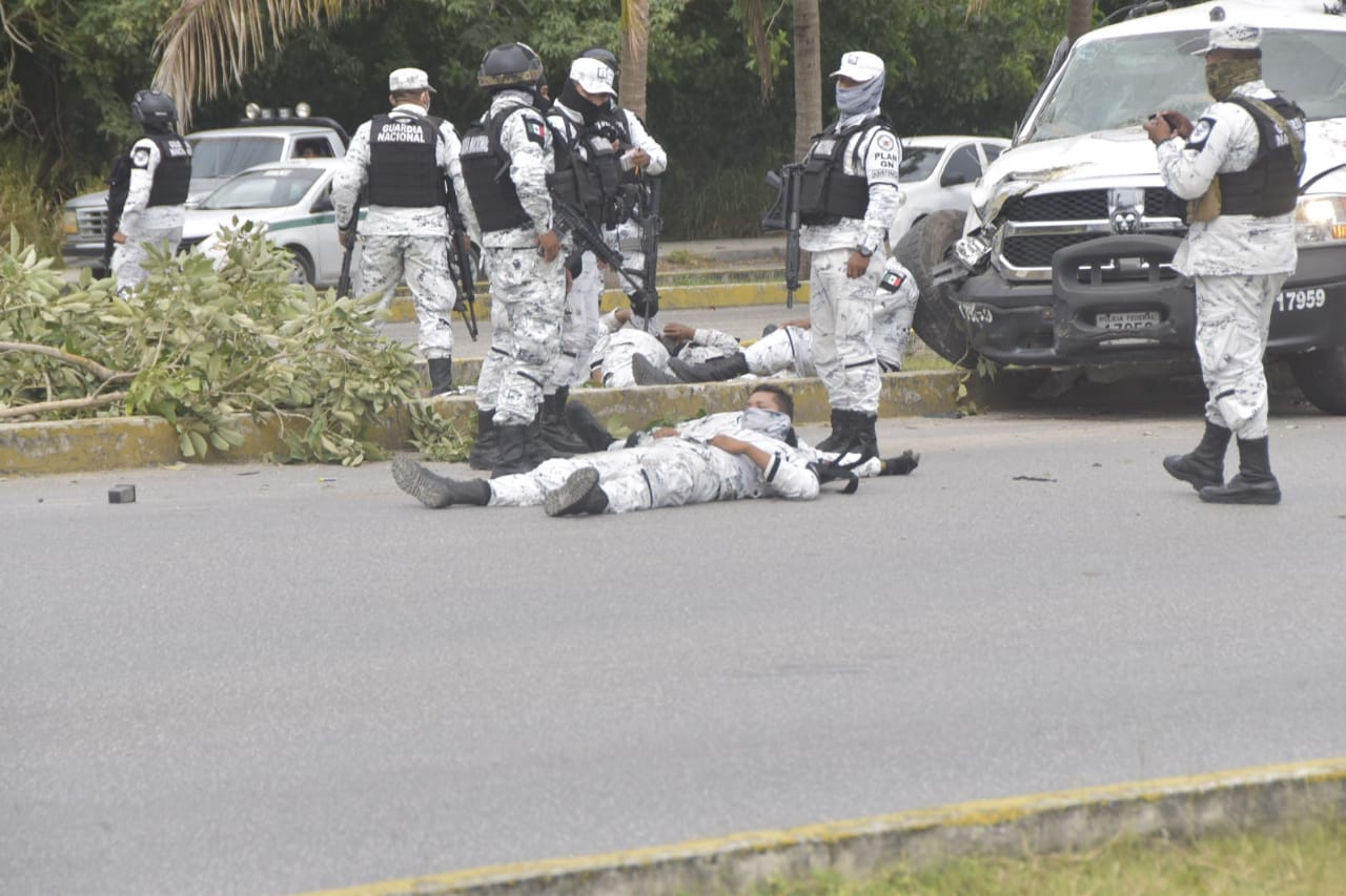Una patrulla de la Guardia Nacional, la cual se informó que realizaba una persecución, terminó volcada tras chocar con un taxi del Sindicato “Andrés Quintana Roo”, dejando al menos cinco elementos lesionados en el lugar.