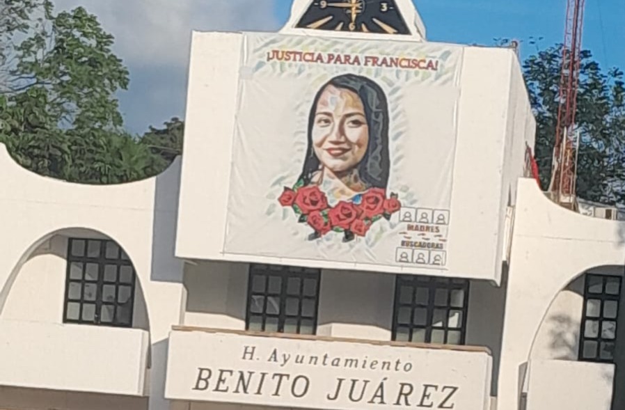Cancún.- La lona con la leyenda “Justicia para Francisca” permanecerá cuatro años y medio sobre la fachada del Palacio Municipal, aseguró su madre María Dolores Patrón Pat, líder del colectivo “Madres Buscadoras”.