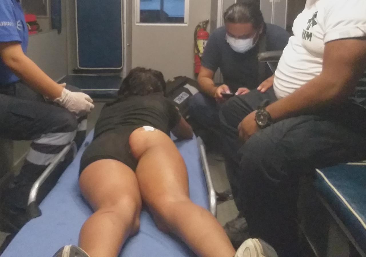 Una de las ojivas de las armas de fuego alcanzó un glúteo de la fémina, por lo que fue atendida por paramédicos en el lugar y posteriormente trasladada a un hospital para una mejor atención.