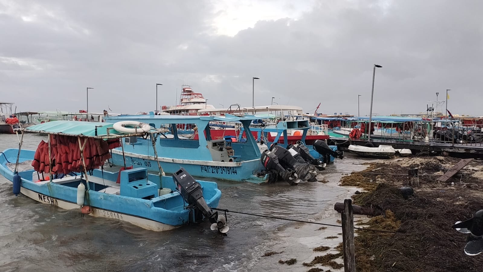 Cancún.– Debido al mal tiempo que prevalecen desde la semana pasada en todo el estado y que mantiene los puertos cerrados a la navegación, la zona de Puerto Juárez se encuentra totalmente vacía, afectando a restauranteros y prestadores de servicios que se encuentran en ese lugar.