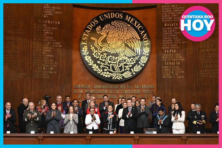 Querétaro.- La gobernadora de Quintana Roo, Mara Lezama Espinosa, acompañó a la presidenta de México, Claudia Sheinbaum Pardo, en la ceremonia conmemorativa por el 109 aniversario de la promulgación de la Constitución Política de los Estados Unidos Mexicanos, realizada en el Teatro de la República, recinto histórico donde fue firmada la Carta Magna de 1917.