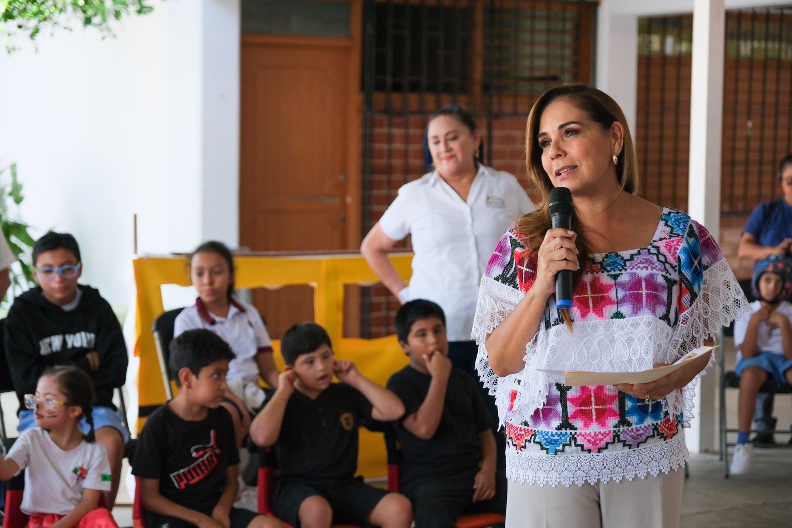 Cancún.- En una visita sorpresa, la gobernadora Mara Lezama Espinosa interactuó con los alumnos del Centro de Atención Múltiple (CAM) “Albert Einstein”, quienes le mostraron con orgullo sus avances en diversas actividades académicas y recreativas. La gobernadora estuvo acompañada por la presidenta honoraria del Sistema DIF Quintana Roo, Verónica Lezama Espinosa, y otras autoridades educativas.