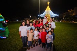 La gobernadora de Quintana Roo saludó a las niñas y niños que se reunieron en la Villa Navideña que se colocó a la altura del asta bandera. Se instaló un tunel de luces, escenario ideal para que habitantes y turistas puedan tomarse fotografías.