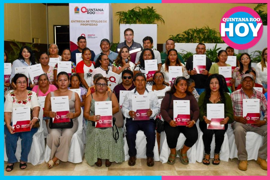 Chetumal.- A través de la Secretaría de Desarrollo Territorial Urbano Sustentable (SEDETUS), la gobernadora Mara Lezama Espinosa entregó 44 títulos de propiedad a beneficiarios y beneficiarias que esperaron largos años, algunos hasta más de 3 décadas para tener su documento.