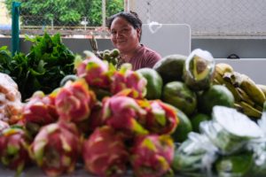 En este lugar se concentraron más de 40 productores, 20 de la zona maya de Tulum y los demás de los municipios de Bacalar y José María Morelos, quienes ofrecen frutas y verduras de temporada, pitahayas, sandías, piñas, miel, huayas, calabaza local, pepino local, huevos, elotes, hamacas, artesanías, plantas, dulces regionales, etc.7k7k86l