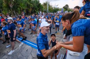 Cancún.- Con más de 2 mil corredores de 13 países, la gobernadora Mara Lezama Espinosa y la presidenta municipal de Benito Juárez, Ana Paty Peralta de la Peña, dieron el banderazo al medio maratón Cancún 2025, en el marco de los festejos por el 55 aniversario de la ciudad.