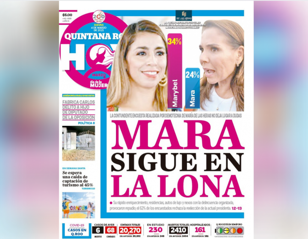 Los problemas de inseguridad, basura, sus presuntos nexos con la delincuencia organizada y sobre todo los escándalos de corrupción que la han convertido en la nueva millonaria de Cancún, han bajado los bonos de la actual presidenta municipal, al grado de que los resultados no le favorecen. Mara lo sabe, pero pese al descontento ciudadano que ha generado, busca desesperadamente su reelección.