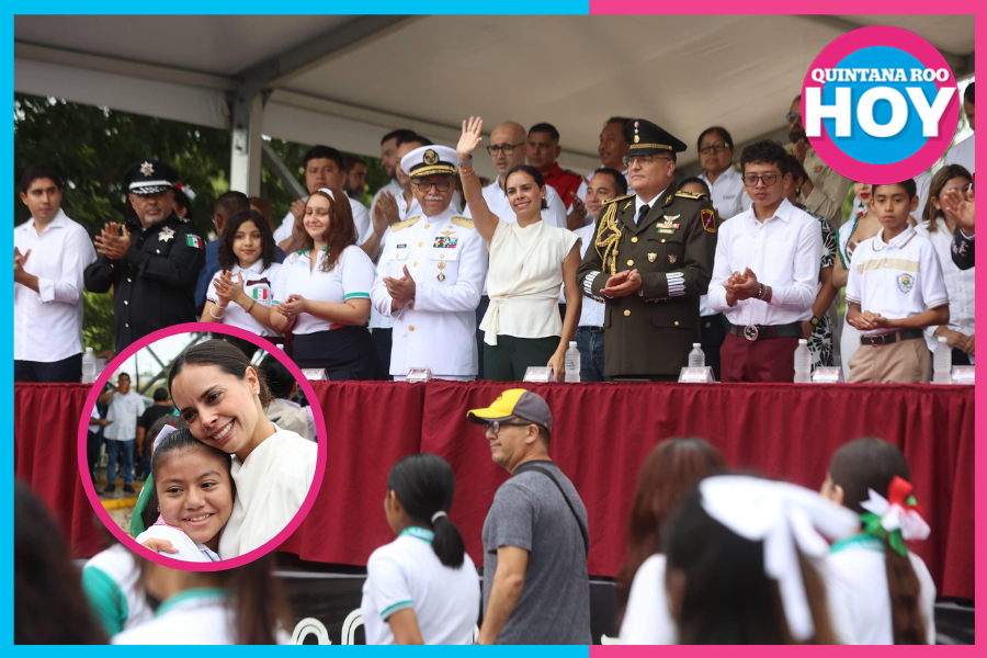Este colorido acto dio inicio a las 08:00 horas, con la avanzada de motocicletas de Tránsito Municipal y el Club de Automóviles Antiguos de Cancún, quienes iban acompañados de la Banda de Guerra, seguido de los bloques de las autoridades militares y del Ayuntamiento.
