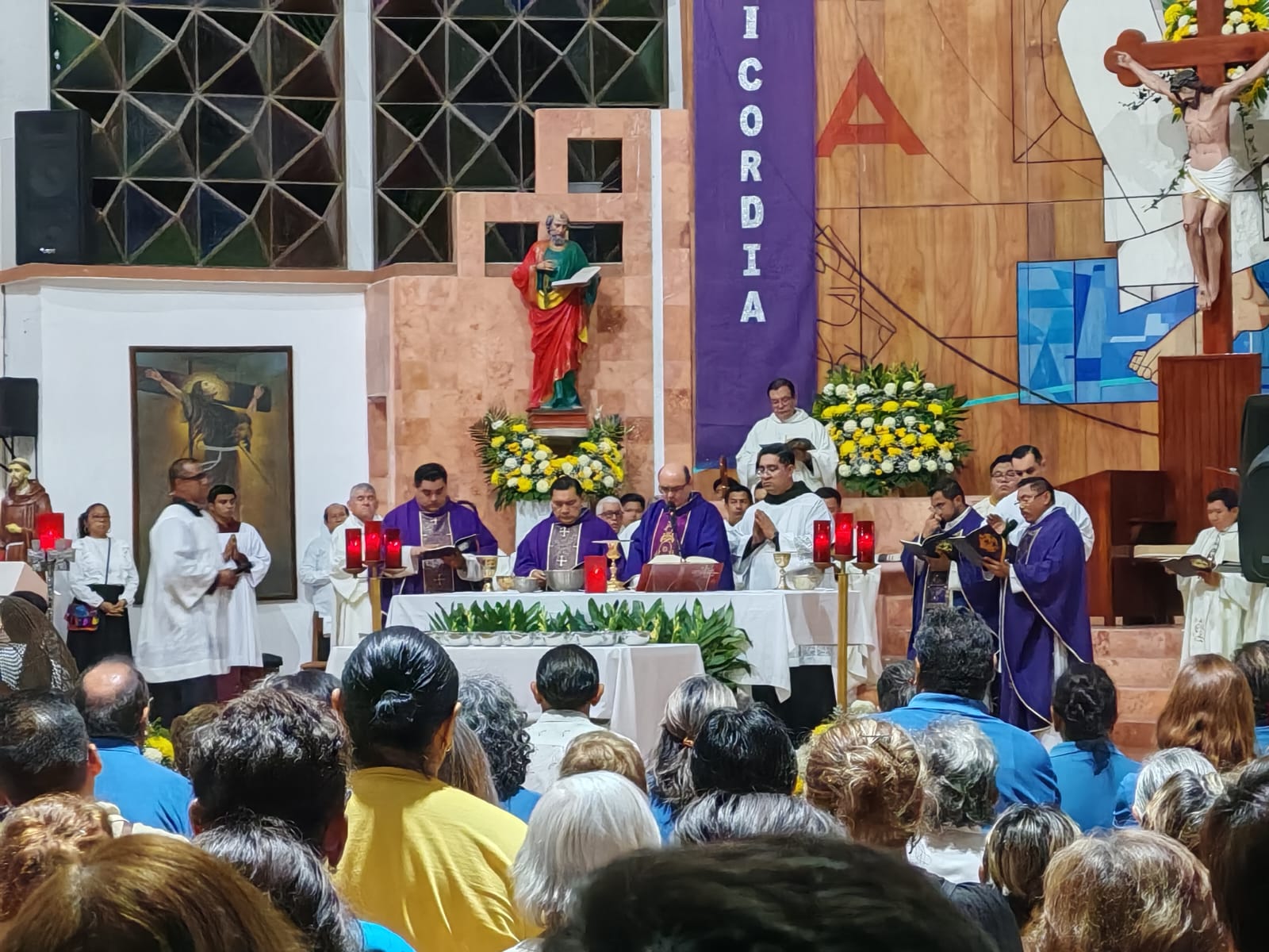 Chetumal.- Cientos de personas asistieron este sábado a recibir al obispo de la Prelatura Cancún-Chetumal, Salvador González, quién ofreció su primera misa en la capital del Estado, tras su nombramiento en Quintana Roo.